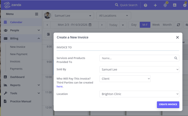 The Billing > New Invoice feature allows to create new invoices that are not linked with client appointments. This is how you will use this feature:
