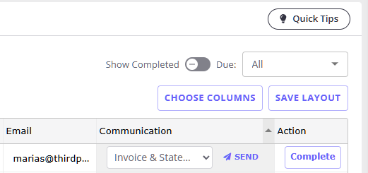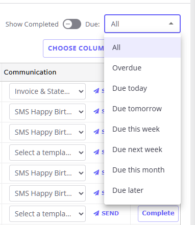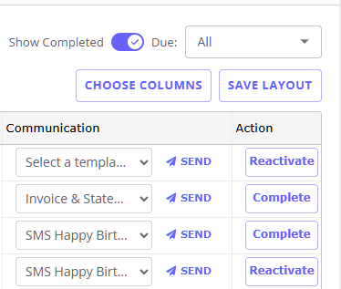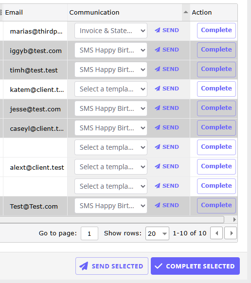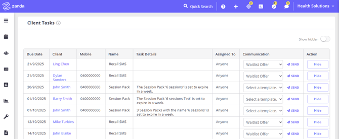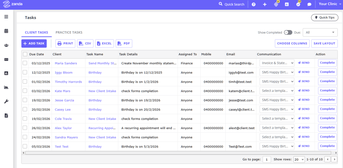 Batch send emails and SMS to multiple clients directly from the Tasks page (where enabled)