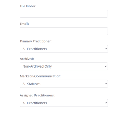 - Assigned Practitioners: practitioners that are set as Assigned Practitioners in a client profile > Admin Manage page.