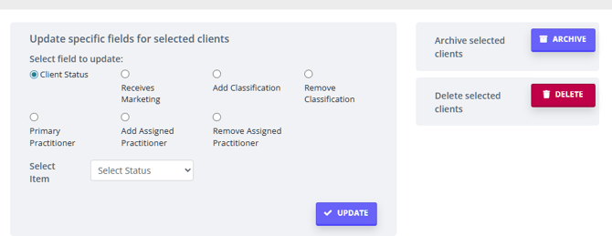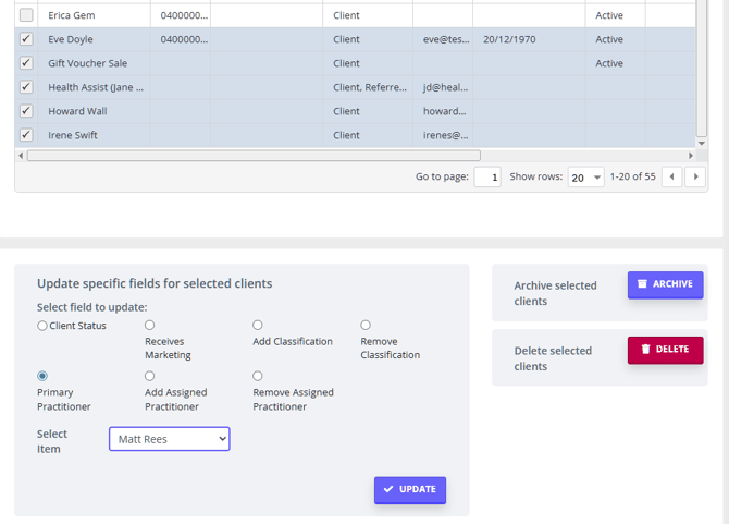 1. When the list is ready, tick the boxes in front of client names to select all or some of the listed profiles that you wish to update.