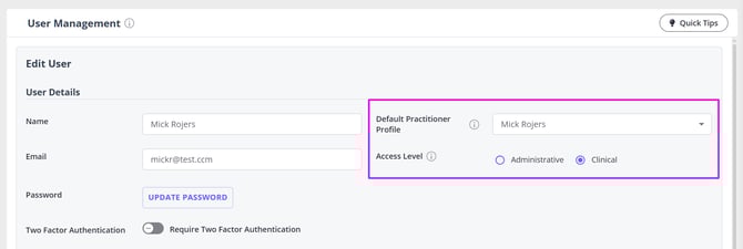 Make sure their user profile is linked to their Default Practitioner Profile, and define their access level (Clinical or Administrative)
