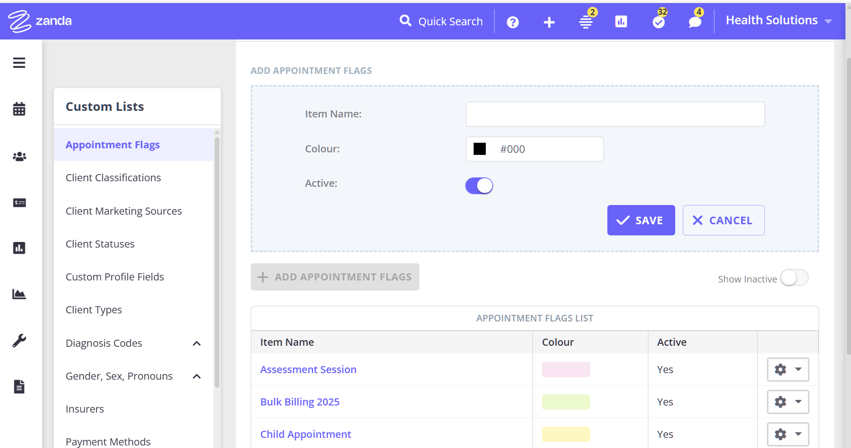 Here’s how you can set up a colour flag for an appointment type in Zanda: