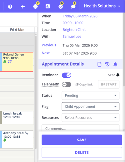 The selected flag will then default for every appointment for that client profile. Users will be able to manually change the default flag for specific client appointments when needed.