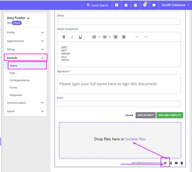 - Drag-and-drop that PDF into your client's Session Note as an attachment for record-keeping purposes.