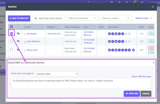 You are also able to send an SMS to Waitlist clients by navigating to People > Waitlist and following the same steps as above.