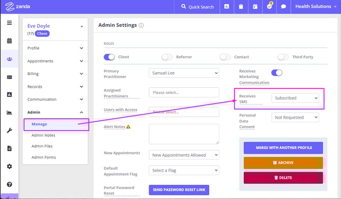 In Zanda, you can communicate with clients, their contacts, referrers, and third parties via both SMS and email channels. Additionally, you can subscribe or unsubscribe recipients from receiving SMS messages directly from your Zanda account. Here is how it works:
