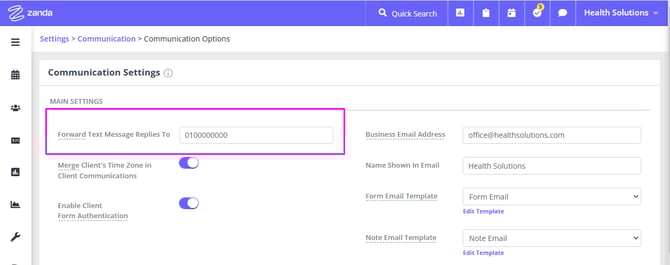 - Zanda offers you the SMS forwarding feature, to make sure that no additional information that clients may provide in their replies to reminders gets missed out on. If your client replies Yes or No, and sends some additional details with their reply, such an SMS can be forwarded to the practitioner's mobile phone or email, or business mobile number or email address. This setting can be found in each practitioner's Calendar settings, via Settings > Team > Practitioners > Click on Practitioner Name > Settings.