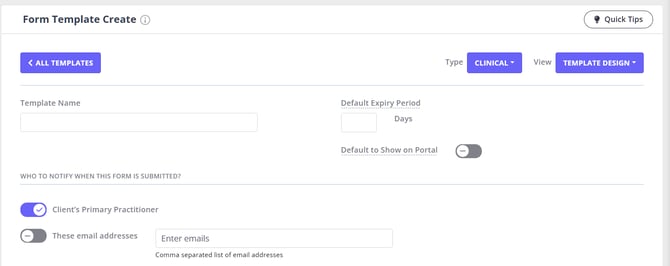 - Alternatively, you can click the + New Form Template button. This will open the form template create screen.