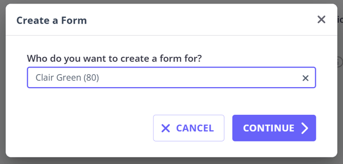 You will be redirected to the New Form page (Client > Records > Forms) for that client, where you'll be able to select a form template and create a form draft.