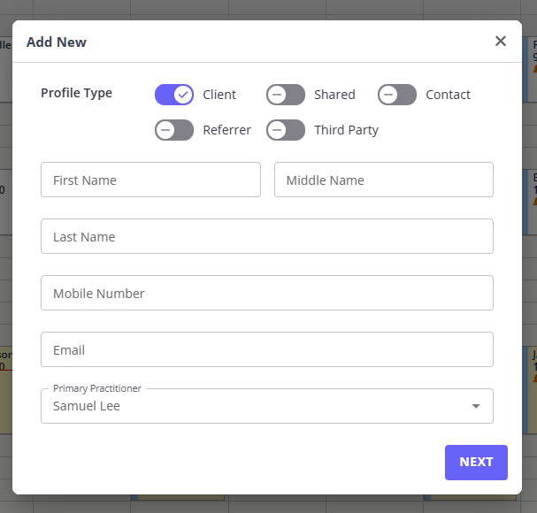 - The Add New Client modal will appear (this is the same form used in People > Add).