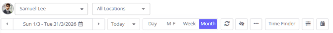 Then, select "Month" to view the practitioner's monthly calendar. The full calendar month will open, allowing you to see all the appointments that are already scheduled for the selected practitioner.