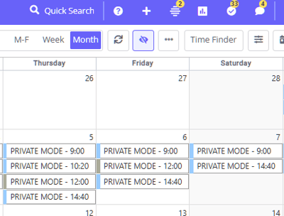 - Like other modes, you can switch to the Private Mode to hide the personal client information. Click on the Private Mode icon in the Calendar toolbar: