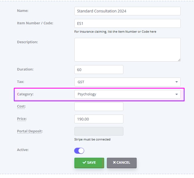 It is possible to assign the existing Saleable Categories to your Services, Products, and Session Packs. To do so,