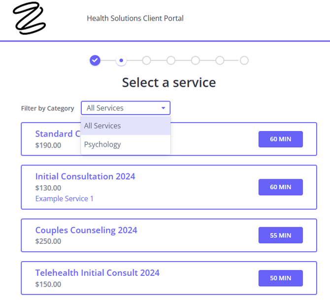 Saleable Categories will also help group the services you offer via the Client Portal. The clients will be able to filter the list of services by their category.