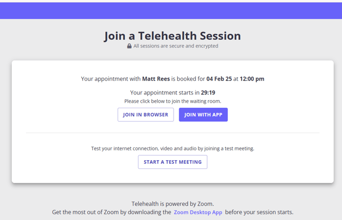 Joining a Telehealth Zoom session - Client Experience